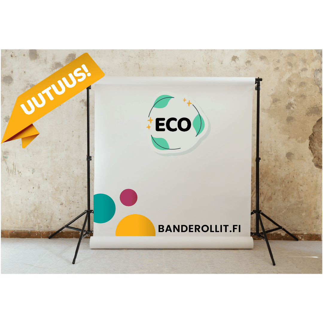 - Mainoskangas painatus näkyy kääntöpuolella himmeästi (ei läpipainettu).